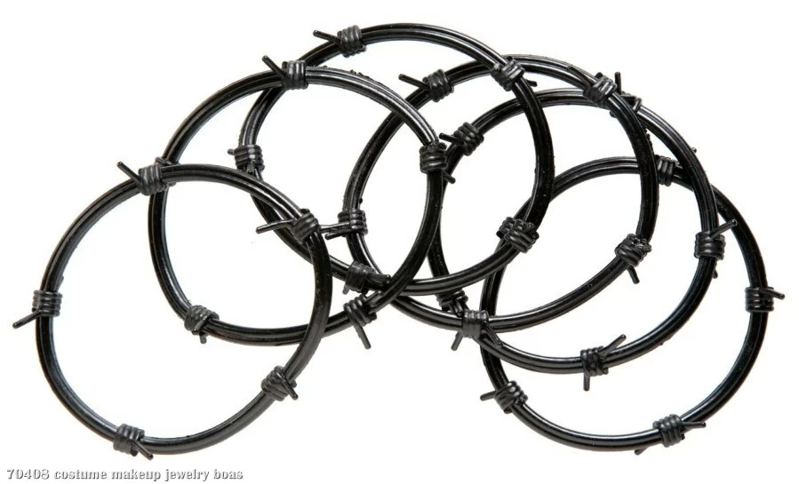 A little rough around the edges? Give your look a punk rock vibe with these bangles. Includes one set of plastic barbed wire bracelets.