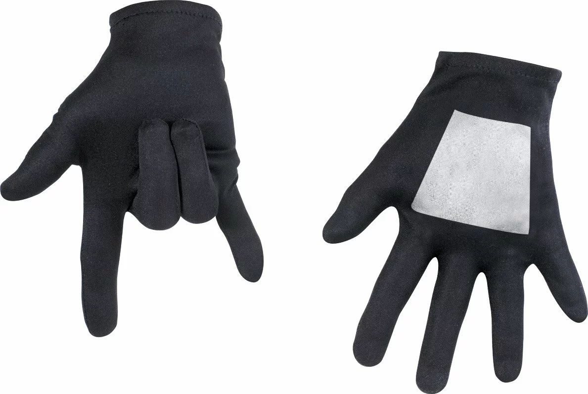 Not only will these sleek gloves keep Spidey’s hands warm, but they’ll protect his identity! The Black-suited Spider-Man Gloves include a pair of black stretch gloves with white patches in the palms.
