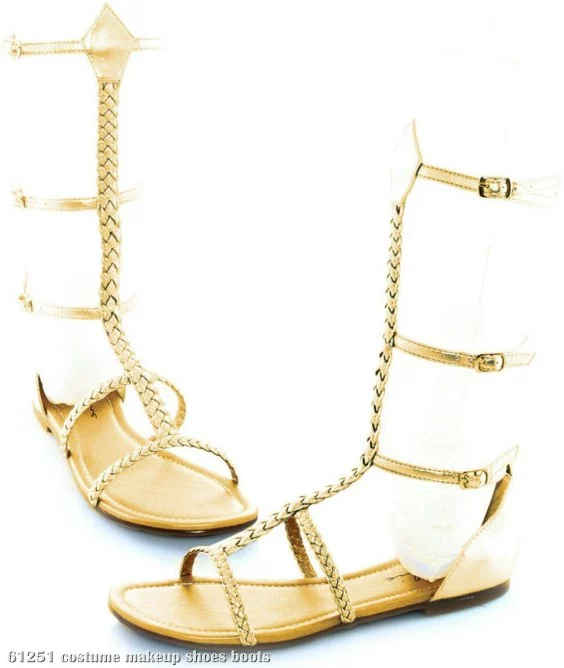 Perfect for your trip to ancient Greece or Egypt, or the costume that looks like you just got back, these sandals are the perfect way to complete your Halloween look! The Cairo Adult Sandals include a pair of gold flat sandals with braided ankle straps that reach up to the mid-calf.