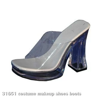 These basic, clear, plastic Platform shoes have a short, thick, clear heel and clear sides. They will compliment almost any costume.