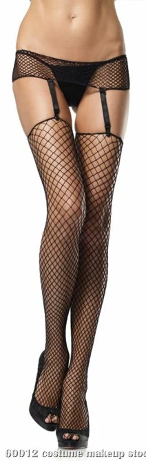 Includes one set of fence net stockings with matching garter belt. Make his temperature rise in these fence net thigh highs.