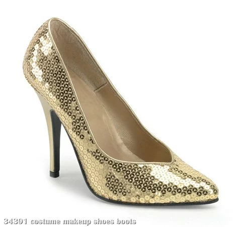 The Gold Sequin Shoes feature an approximate 5″ heel, classic pump design, and gold sequin embellishments. Whether you are a disco-dancing damsel shaking your groove thing until you can’t ‘boogie oogie oogie no more’, or a Mardi-Gras maven making her mark on Bourbon Street, these shoes add a festive finishing touch!