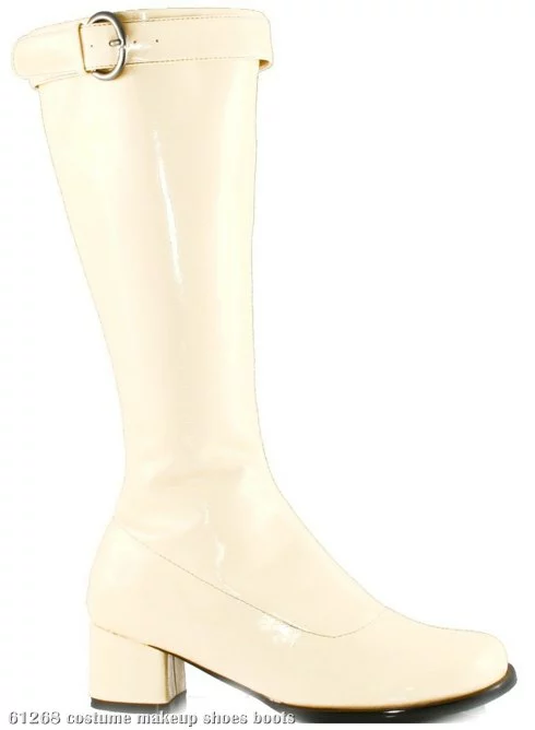A look meant for some good times Go-Go dancing, these boots are a great way to complete your 60’s inspired look! The Hippie White Adult Shoes include a pair of 3″ heel white Gogo Boots with a buckle at the top.
