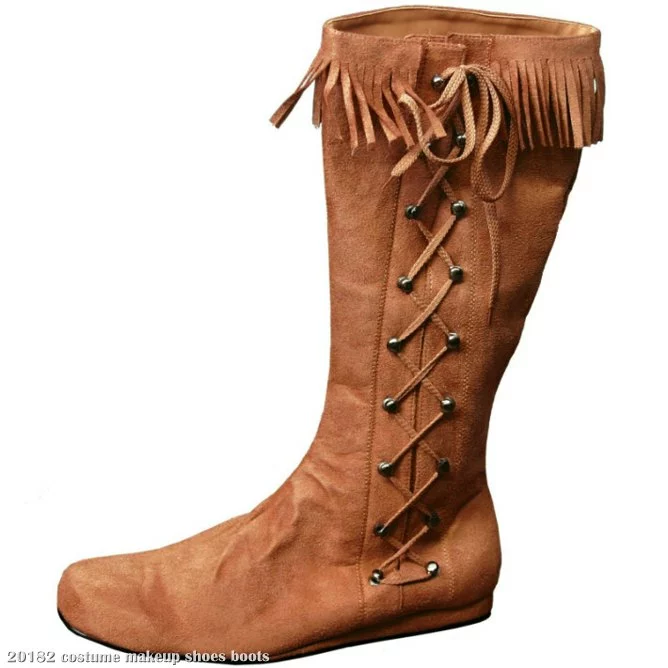 These stylish faux suede boots offer comfort as well as a look of authenticity! Includes one pair of tan Indian side lace boots with tan sole.