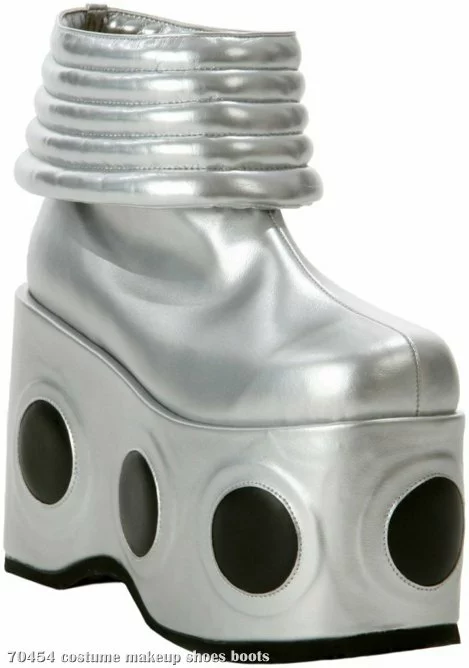 You’ll be rockin’, stompin’ and ready to party all day everyday with these 5 inch silver platforms featuring black circular embellishments on the platform and futuristic design on the ankle. (Boots are an exact replica of the platforms worn by Ace Freheley on the Alive! tour)