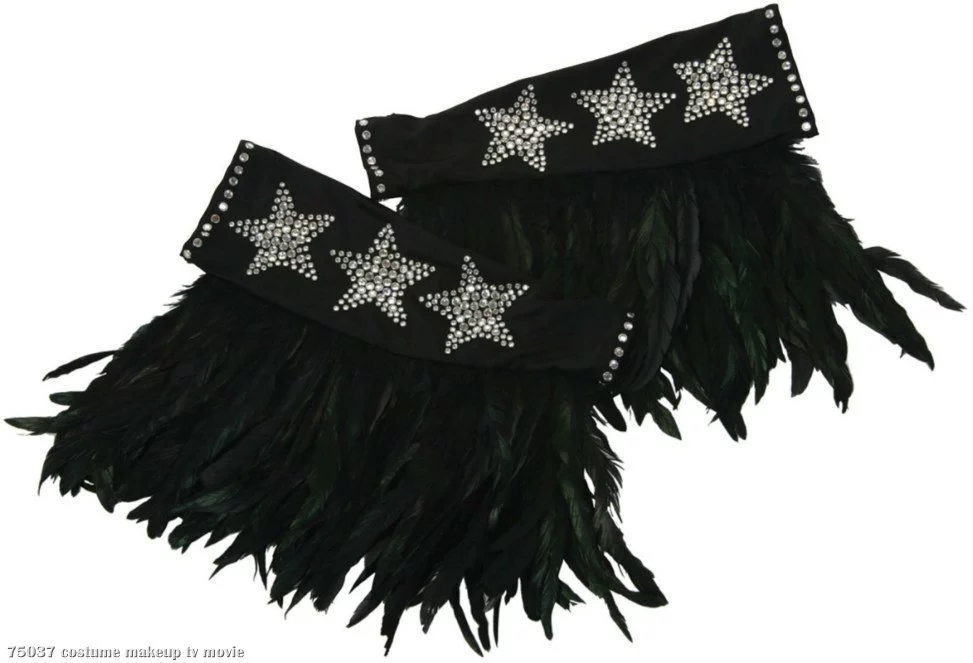 No starry eyed rock star’s look would be complete without the signature Starchild style armbands featuring rhinestone stars and attached oversized feathers. With these on, you’ll surely be ready to Rock and Roll all Nite.
