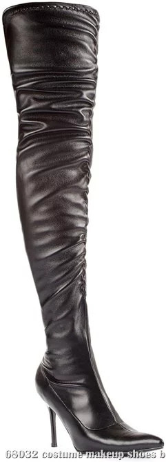 The possibilities are limitless with these sky-high boots! Includes one pair of stretchy faux-leather, thigh-high boots with a ruched design and 3.5-inch heel.