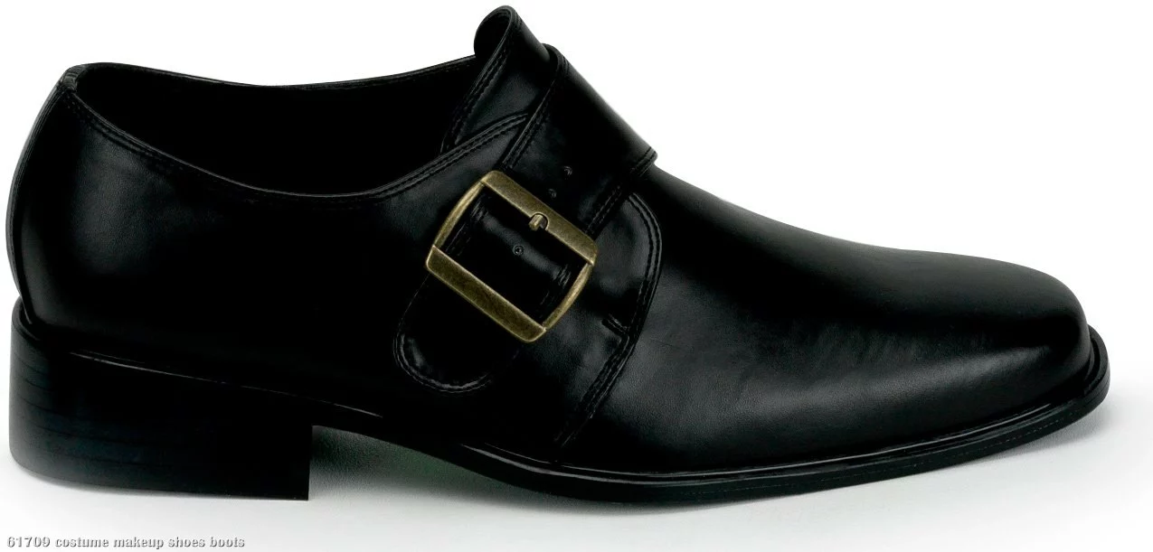Pirate, pilgrim, gangster, goon…these classic black shoes can go with any costume. Includes one pair of black loafers with brass buckle.