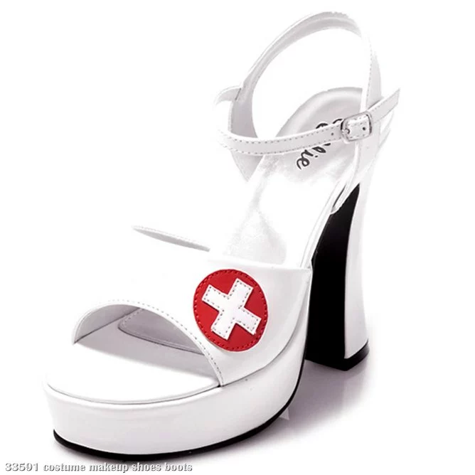 The White Betty Shoes feature an approximate 5.5″ chunky heel with an adjustable ankle strap and a red cross on the outside. You will look chronically sexy and keep your patients feeling great in these sexy patent shoes.