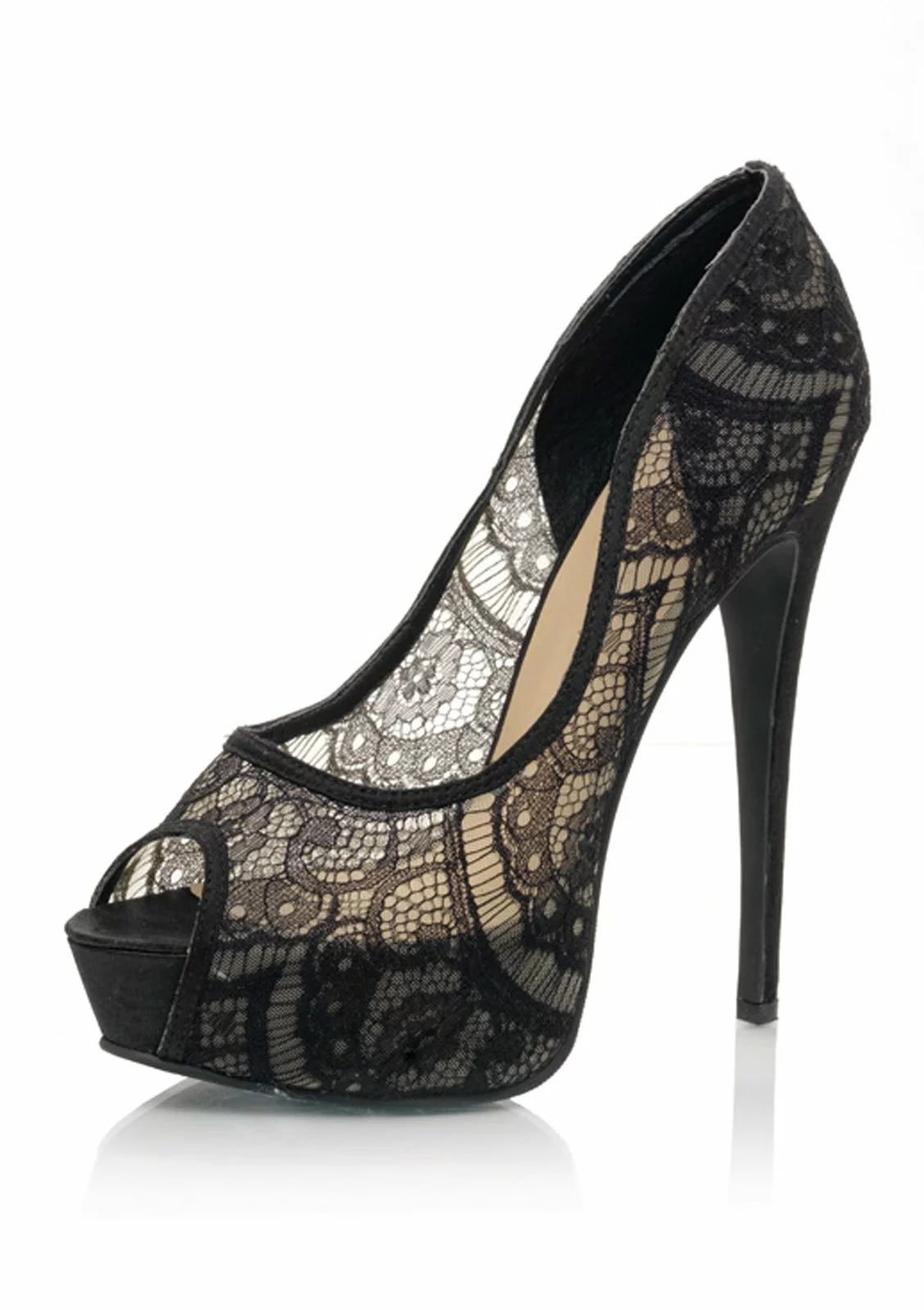 Olivia (Black) Sheer Lace Pumps Adult Shoes