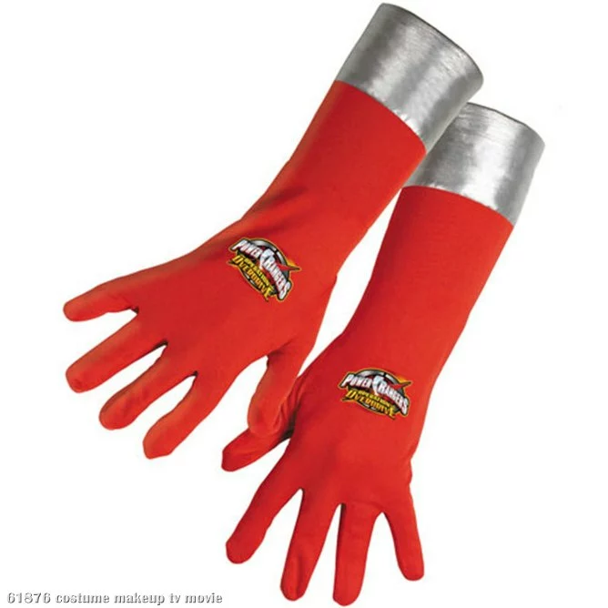 Hand-to-hand combat is no problem if you’re a Mighty, Morphin’ Power Ranger! Complete any red ranger costume with these red gloves with silver trim and Power Rangers logo.