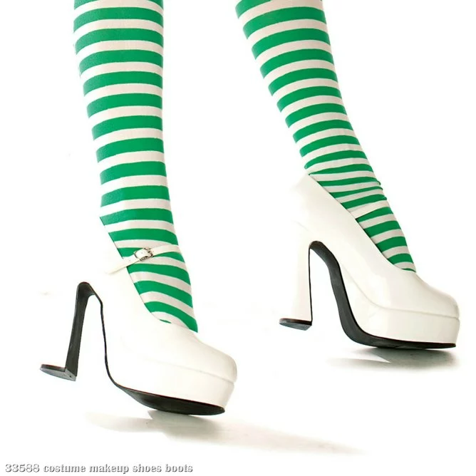 The Sexy White Eden shoes feature an approximate 5″ heel and 1.5″ platform with an adjustable ankle strap. These sassy patent shoes will go perfectly with your Little Bo Peep costume (sold separately) and ewe will look amazing in them!