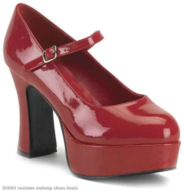 Perfect for a Sexy Red Vixen! These lucious red Mary Jane Platform style shoes feature a wide width for extra comfort, paten leather throughout, and a 4″ chunky heel. Dance the night away this Halloween in comfort and sexy style!