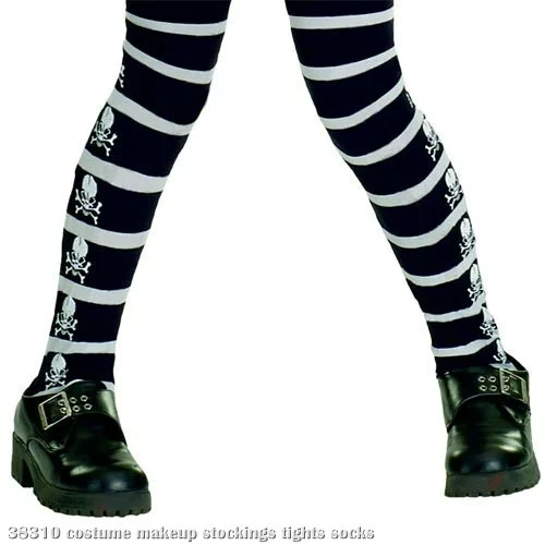 Whether your child’s costume is more pirate or punk, these tights will add some fright and fun to their disguise! Includes one pair of black and white striped tights with skull and crossbone detailing down the legs.
