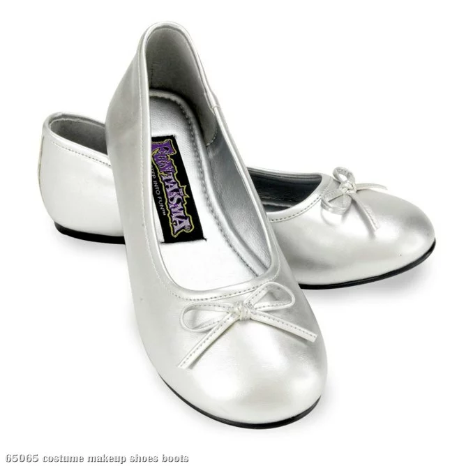 Whether it’s Halloween or any other day of the year, these fun flats are the footwear to get your outfit in gear. The Star Silver Adult Shoes include a pair of silver patent ballet flats with a matching bow on the toe.
