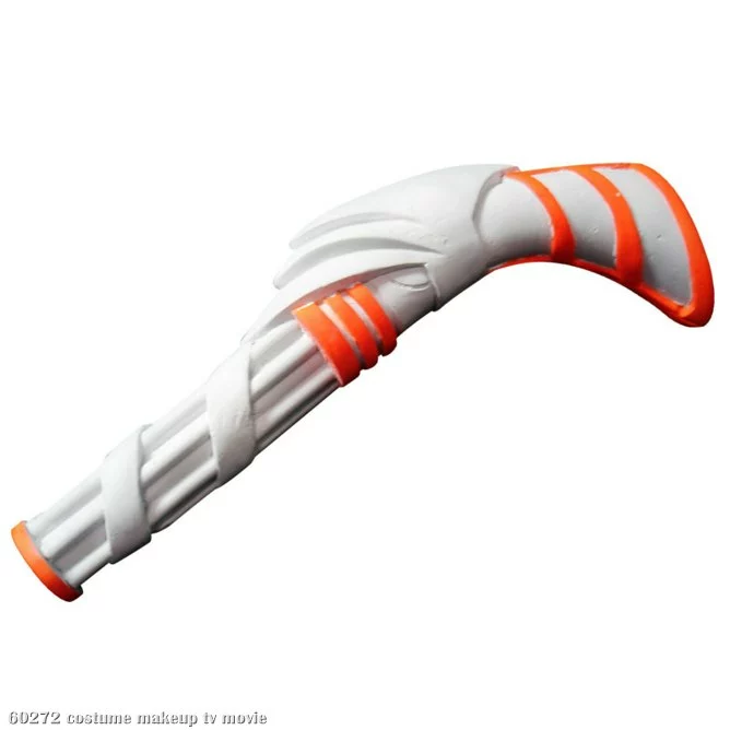 Nero’s gun packs a powerful blast! From Star Trek 2009; it’s an orange and white plastic gun–the “must have” accessory to your Nero costume.