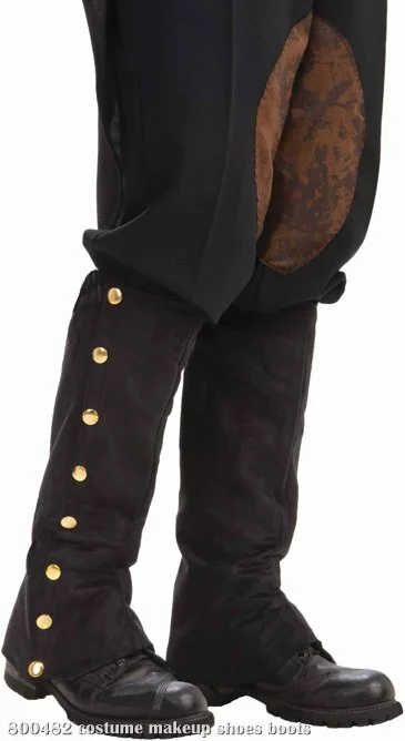 Bring to life the wonder of science fiction with these cool Steampunk spats this Halloween! Includes one pair of black spats that feature faux gold buttons.