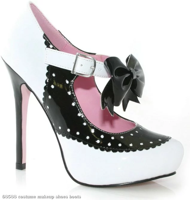 These classically cute shoes may be called babydolls, but they’re anything but. These Sweeties combine classic saddle shoe styling with a 5-inch heel and removable patent bow. Perfect for school girls and sock hop sweethearts alike!